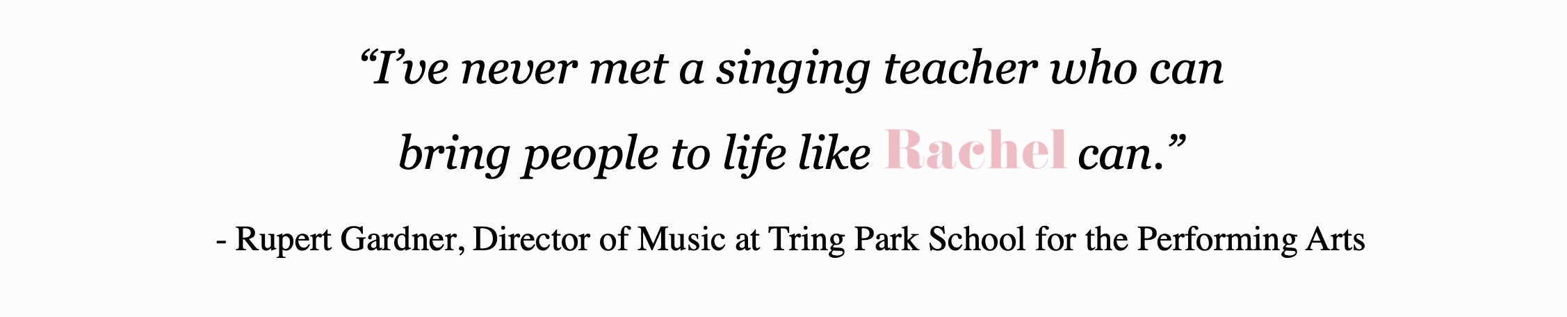 “I’ve never met a singing teacher who can bring people to life like Rachel can.”
